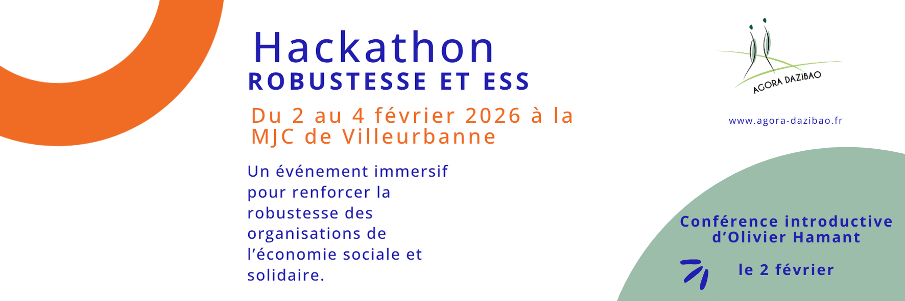 Avant l’évènement, chaque organisation participante fera remplir à ses membres un questionnaire, fourni par Agora Dazibao, pour évaluer la robustesse de l’organisation. Pendant le hackathon, vous recevez un résultat de cet audit sur mesure : état des lieux de la robustesse de votre structure, identification des fragilités et pistes d’amélioration concrètes. Un outil précieux pour concevoir, pendant le Hackathon, en lien avec les sujets traités, un plan d’action sur mesure pour renforcer la robustesse de votre structure.